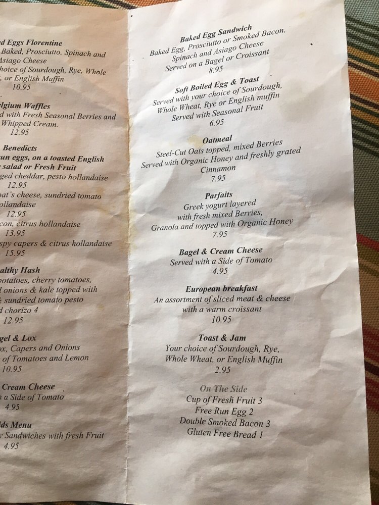 Served with your choice of Sourdough, Whole Wheat, Rye or English muffin. Served with Seasonal Fruit